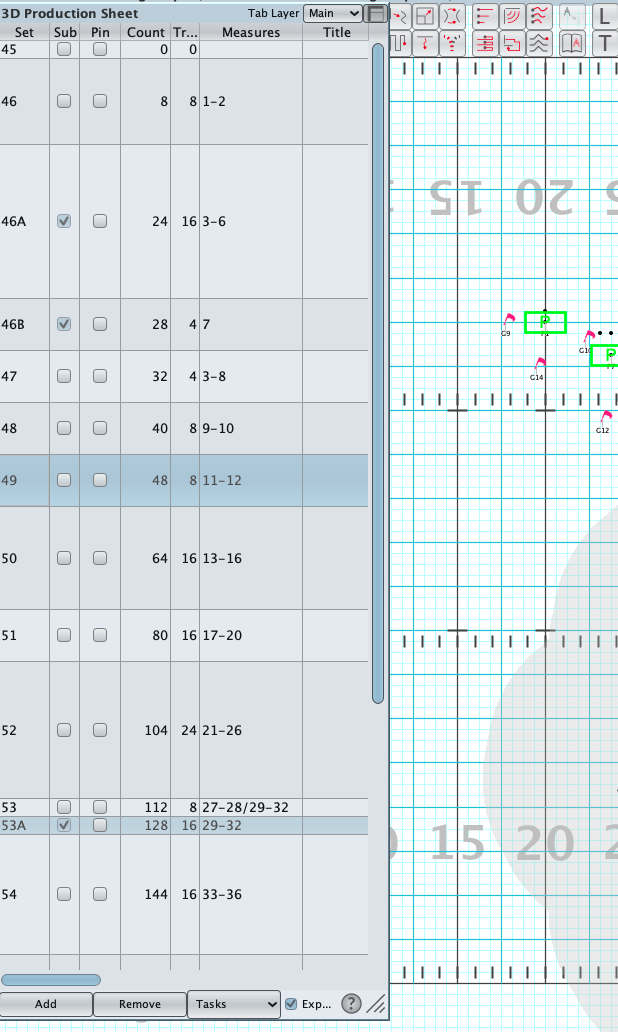 When the measure numbers are added to this column, they also appear in the generic production sheet notes in the “Information” section of UDB.