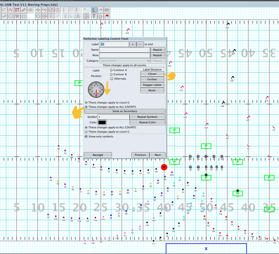 For a clean and predictable look in UDBapp, it is suggested that every performer label point either down or up at a distance of “2” inside of Pyware.